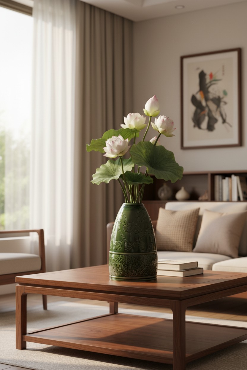 - Phòng khách: Trên bàn console, kệ trang trí, hoặc bên cạnh bộ sofa để tạo điểm nhấn nghệ thuật.