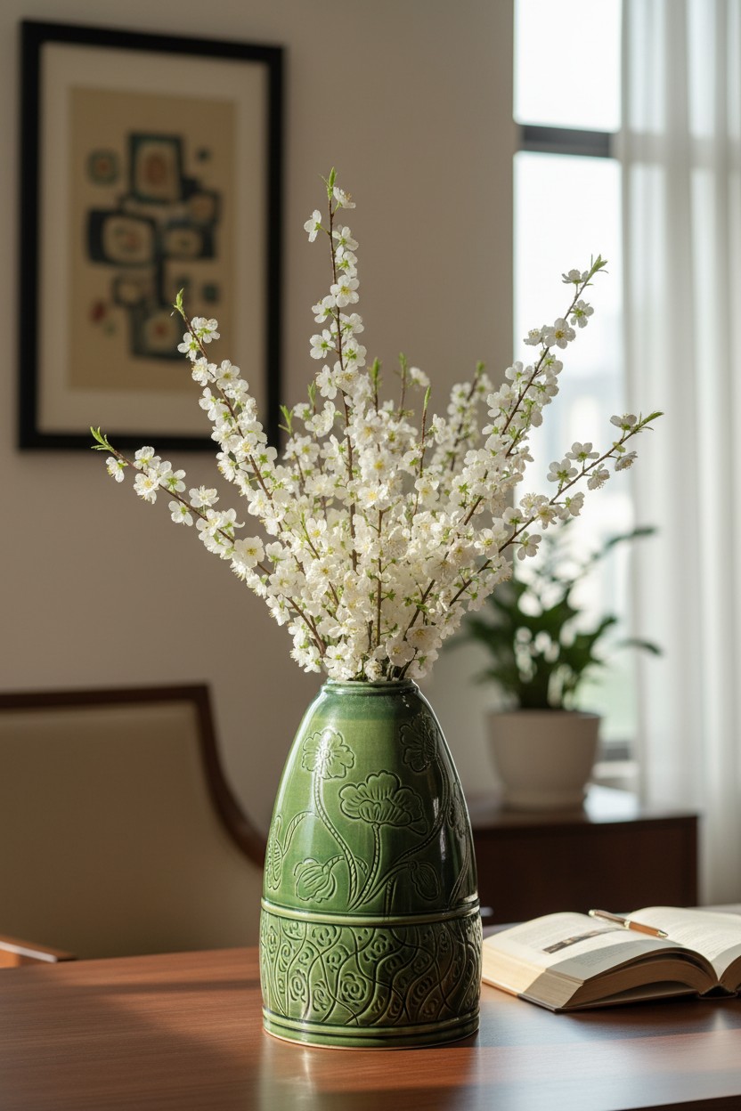 Dù đặt trong phòng khách, phòng làm việc hay sảnh tiếp đón, chiếc lọ hoa này đều tạo nên một điểm nhấn sang trọng, thể hiện gu thẩm mỹ và sự tinh tế của gia chủ. Nó không chỉ là một món đồ trang trí mà còn là một tác phẩm nghệ thuật gửi gắm thông điệp về sự thịnh vượng, may mắn và đẳng cấp.