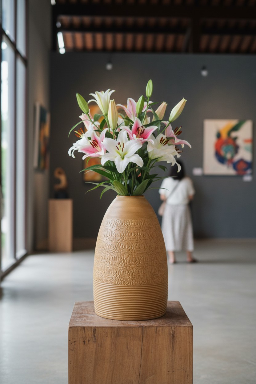 Chiếc lọ không chỉ là vật dụng cắm hoa mà còn là một điểm nhấn nghệ thuật, mang đến sự ấm cúng và thanh lịch cho không gian sống.