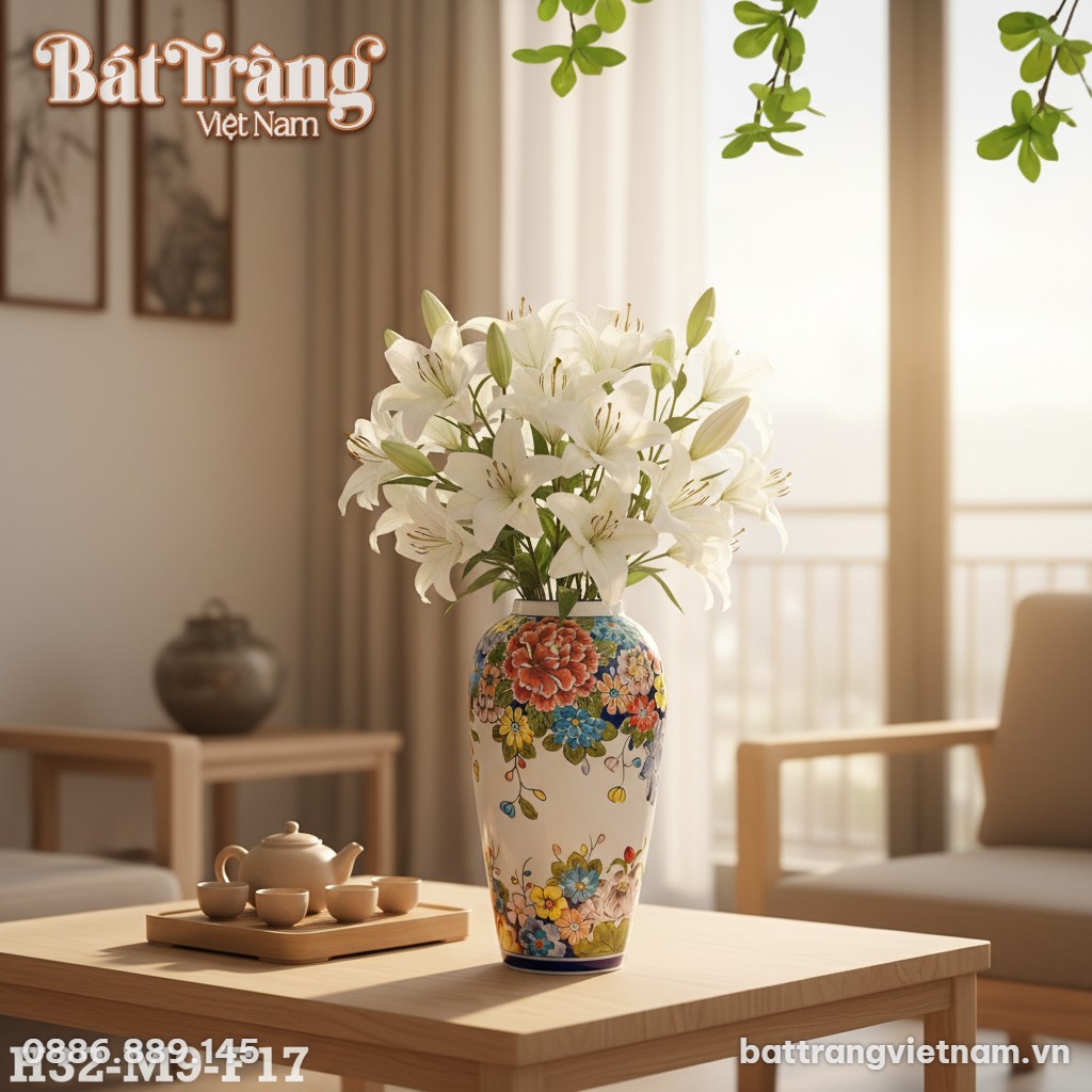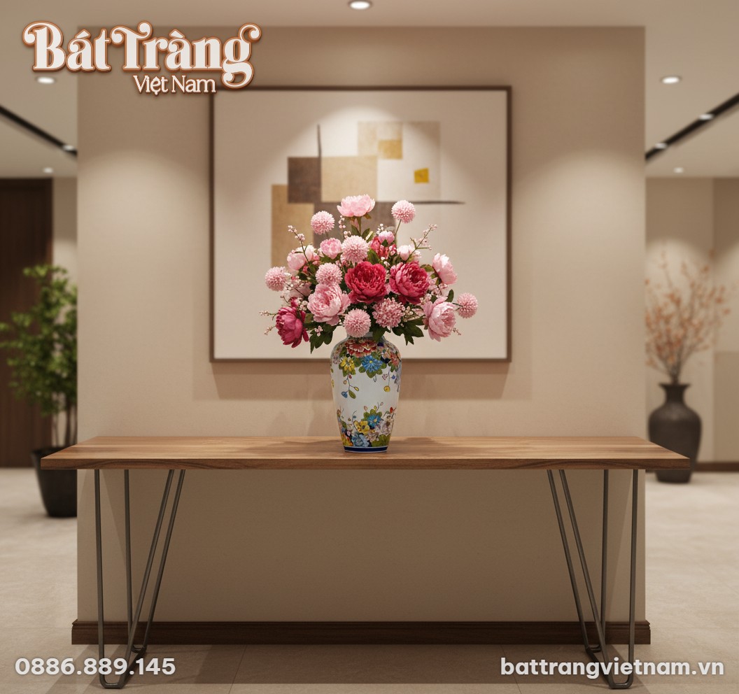 Sản phẩm này là một minh chứng cho sự linh hoạt và khả năng ứng dụng cao của các sản phẩm lọ hoa gốm Bát Tràng trong việc làm đẹp không gian sống.