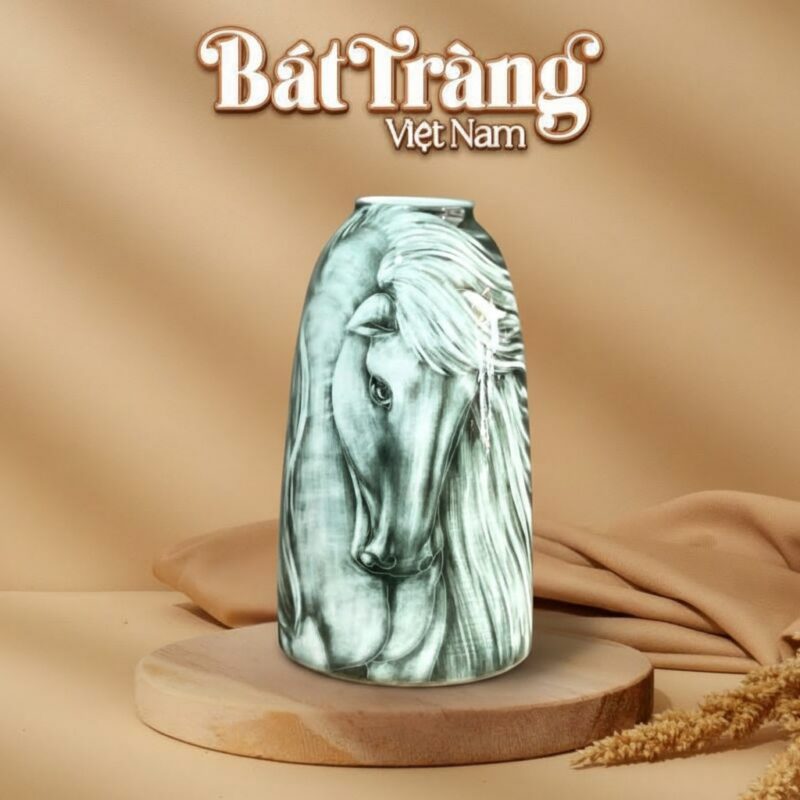 Điểm nhấn đắt giá của chiếc lọ hoa này chính là họa tiết đầu ngựa được vẽ tay thủ công vô cùng tinh xảo. Từng đường nét uyển chuyển khắc họa hình ảnh chú ngựa đang nghiêng mình, với bờm bay lãng tử và ánh mắt có hồn, toát lên vẻ đẹp kiên cường và phóng khoáng. Họa tiết ngựa mang ý nghĩa Mã Đáo Thành Công – biểu trưng cho sự thành công, phát đạt trong kinh doanh và cuộc sống, đồng thời là lời khẳng định mạnh mẽ về tinh thần không ngừng vươn tới.