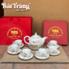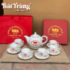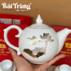 Bộ sản phẩm đầy đủ bao gồm 01 ấm trà dung tích 650ml, 06 chén và 07 đĩa lót, được chế tác đồng bộ. Quai cầm và vòi ấm được thiết kế cân đối, giúp thao tác rót trà mượt mà và chính xác, mang lại trải nghiệm thưởng trà trọn vẹn.