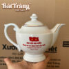 Bộ ấm trà in logo sở hữu kiểu dáng Thần Đèn độc đáo, với phần thân bầu tròn và vòi cao thanh thoát, mang lại vẻ đẹp vừa cổ điển vừa sang trọng.