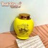Bề mặt lọ được phủ một lớp men bóng cao cấp với các tùy chọn màu sắc đa dạng như vàng tươi, xanh cổ vịt và trắng sứ tinh khôi. Lớp men này tạo nên vẻ đẹp thẩm mỹ có chiều sâu, đồng thời có khả năng chống trầy xước, bám bụi và phai màu theo thời gian, giúp sản phẩm luôn bền đẹp.