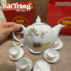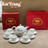 Bộ sản phẩm đầy đủ bao gồm 01 ấm trà, 06 chén và 07 đĩa lót, được thiết kế đồng bộ. Sản phẩm đi kèm nhiều lựa chọn hộp đựng như hộp carton có quai xách tiện lợi hoặc hộp xi lót lụa cao cấp, đáp ứng mọi nhu cầu về quà tặng.