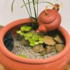 Bề mặt sản phẩm giữ nguyên màu nâu đất đặc trưng của chất liệu đất nung, không tráng men bóng. Đặc tính này giúp tiểu cảnh nước dễ dàng hài hòa với cây xanh, sỏi đá và các vật phẩm trang trí khác, đồng thời có độ bền cao, chống chịu tốt với độ ẩm.