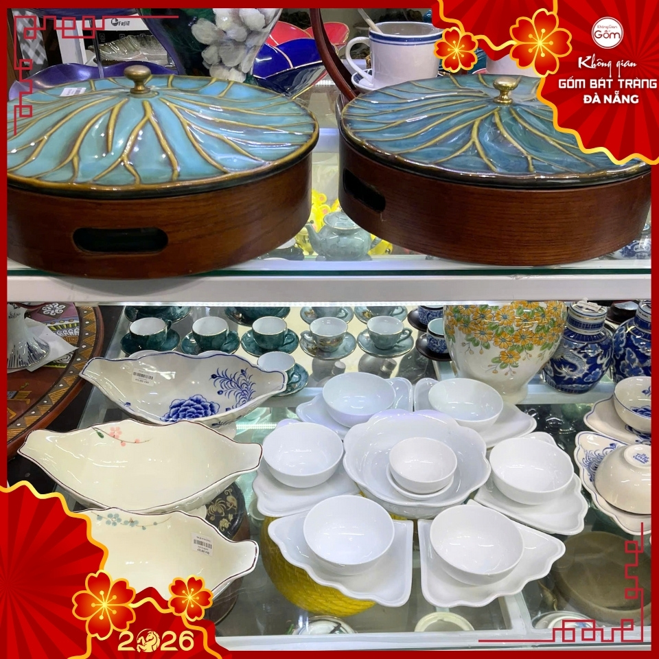 Khay mứt sứ Bát Tràng là vật phẩm không thể thiếu trên bàn trà mỗi dịp Tết, tượng trưng cho sự sung túc và lòng hiếu khách của gia chủ. Với nắp đậy khít khao cùng chất sứ sạch nung nhiệt độ cao, sản phẩm giúp bảo quản bánh kẹo luôn thơm ngon, đồng thời tạo điểm nhấn sang trọng cho không gian tiếp khách ngày xuân.