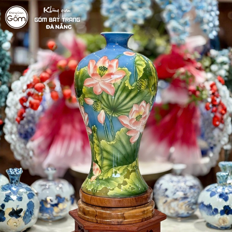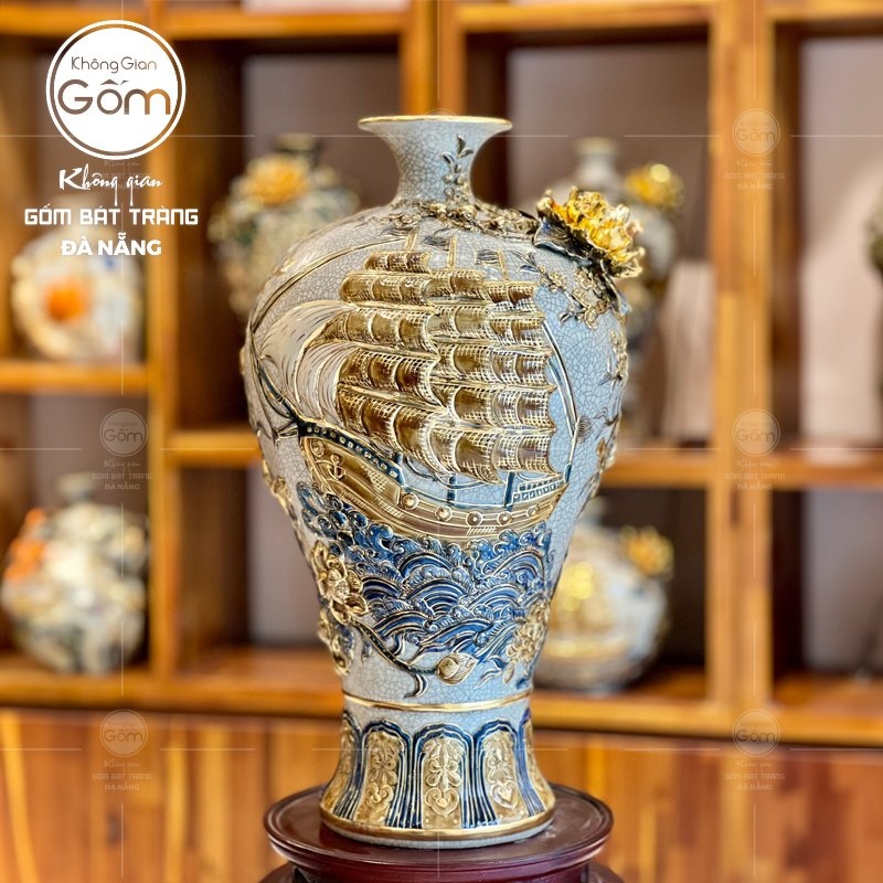 Khách hàng đến với showroom Không Gian Gốm Đà Nẵng có thể thỏa sức lựa chọn các mẫu mai bình với nhiều kích thước và màu sắc khác nhau. Từng họa tiết trang trí, đắp nổi hay dát vàng trên thân bình đều được chế tác tỉ mỉ, biến vật phẩm này thành món quà đẳng cấp dành tặng cho những dịp đặc biệt quan trọng.