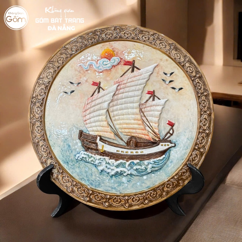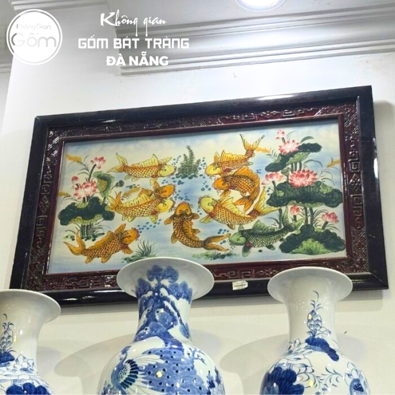 Tranh gốm sứ Bát Tràng sở hữu độ bền vĩnh cửu với màu sắc men nung không bao giờ phai nhạt. Tại showroom, bạn có thể tìm thấy nhiều chủ đề tranh phong thủy kinh điển như “Thuận Buồm Xuôi Gió”, “Cá Chép Hoa Sen” hay “Tùng Hạc Diên Niên” được đắp nổi công phu, tạo hiệu ứng 3D sống động.
