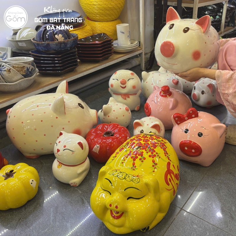 Tại showroom Không Gian Gốm Đà Nẵng, bạn có thể tìm thấy ống tiết kiệm với đủ hình dáng ngộ nghĩnh như chú chó, chú mèo, ngựa, gấu trúc hay nhân vật hoạt hình Pikachu… với nhiều kích cỡ và màu sắc, kiểu dáng, hoa văn trang trí khác nhau.