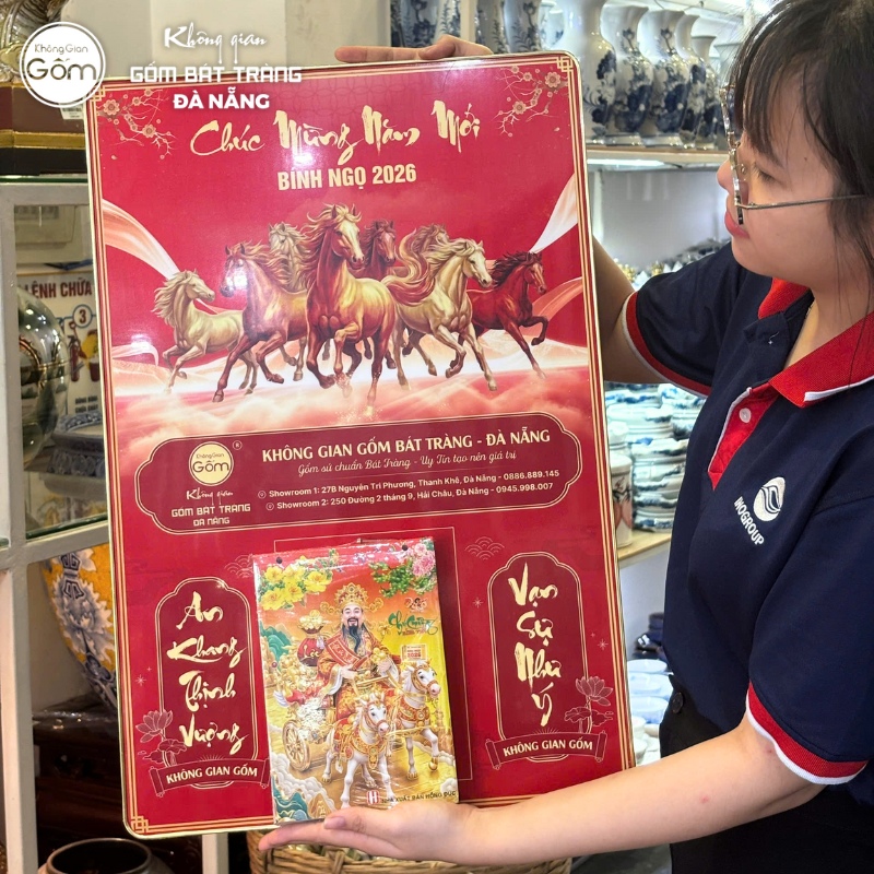 Mẫu lịch quà tặng khuyến mãi Tết 2026 tại showroom Không Gian Gốm Đà Nẵng