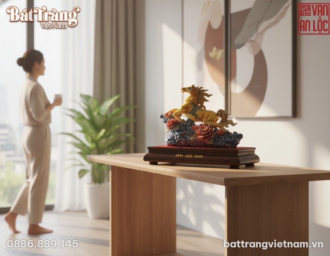 Tượng Ngựa Phi Trên Mây Và Hoa Mẫu Đơn Gốm Sứ Bính Ngọ là một tuyệt phẩm nghệ thuật mang đậm giá trị phong thủy và tinh hoa thủ công, thể hiện khí phách mạnh mẽ và khát vọng thành công. Là một trong những sáng tạo nổi bật của Gốm Bát Tràng Việt Nam, bức tượng này không chỉ là vật phẩm trang trí mà còn là biểu tượng ý nghĩa cho một năm Bính Ngọ 2026 đầy thịnh vượng.